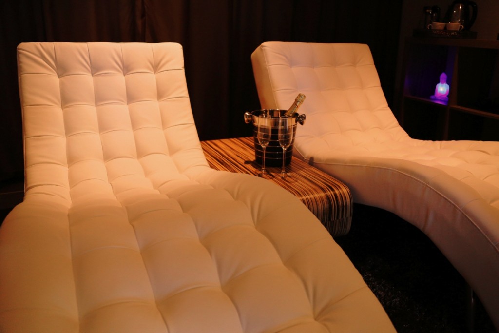 The private area contains a jacuzzi, sauna, a relaxing area.